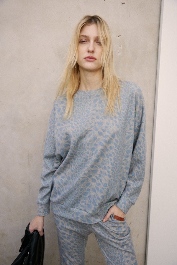 Buzo de waffle full print , corte oversize con detalle de badana personalizada.