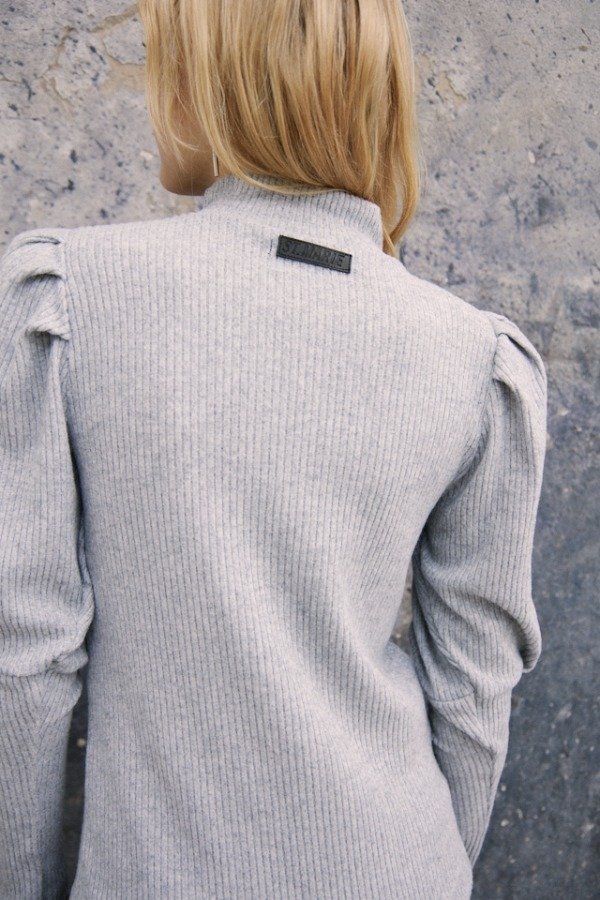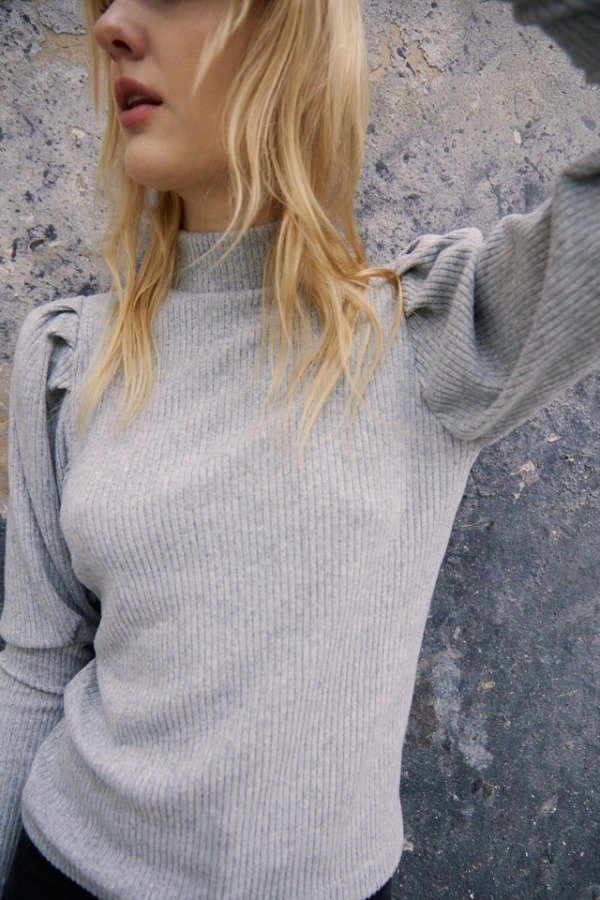 Buzo al tacto lana media polera con manga princesa y badana de ecocuero en espalda.