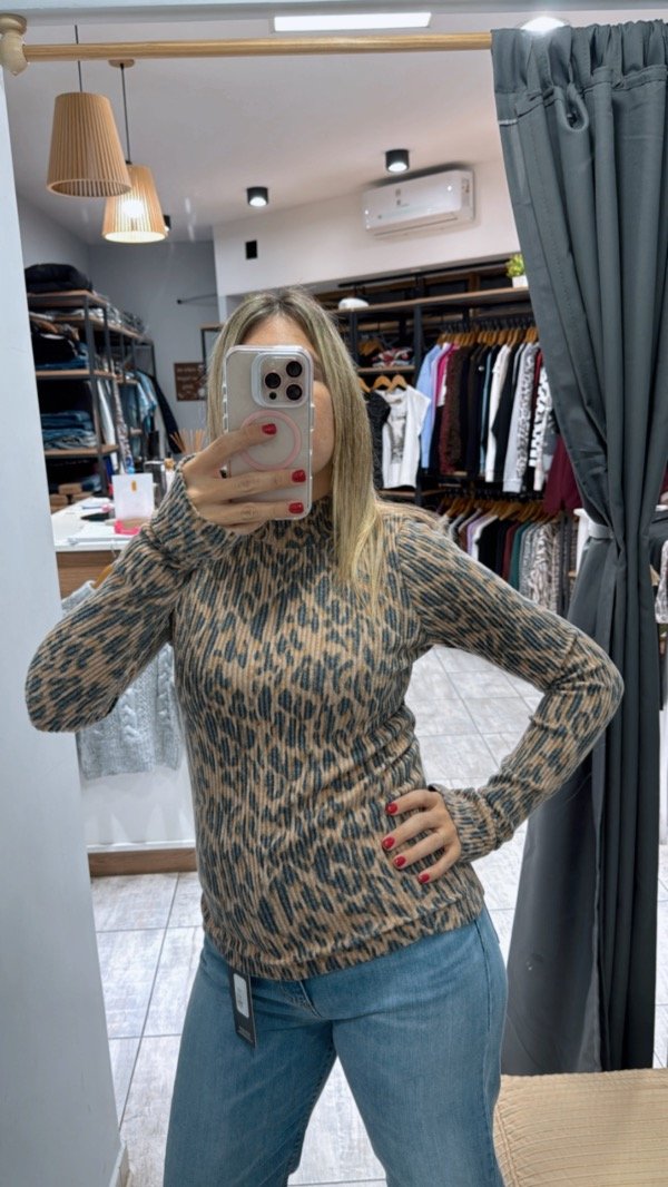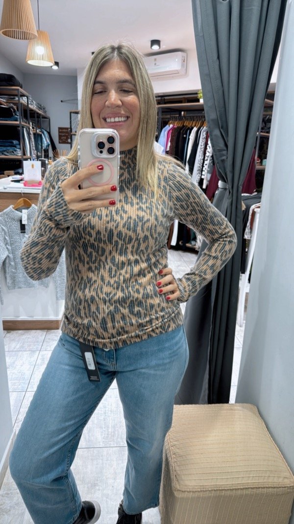 Polera de lana soft print morley clásica con abertura de dedo y badana en espalda