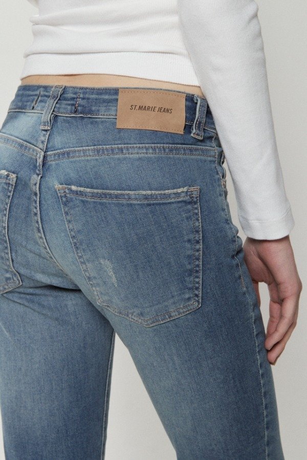 Jean calce skinny elastizado. Tiro medio. Cinco bolsillos.