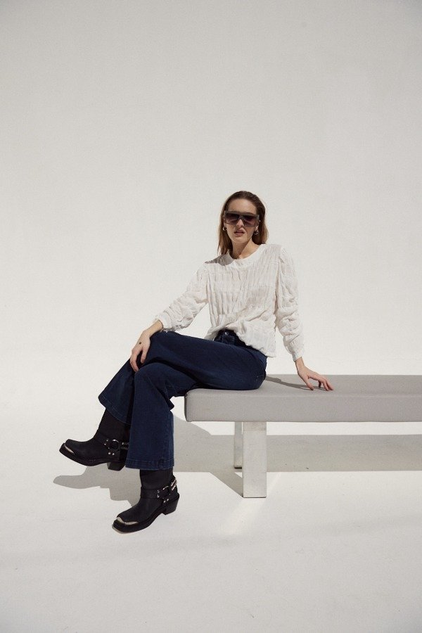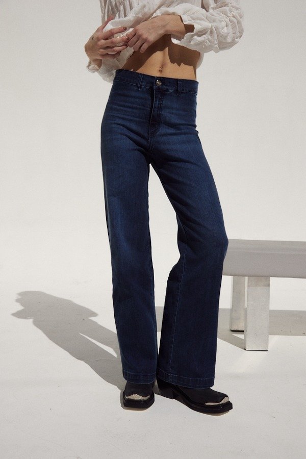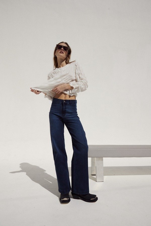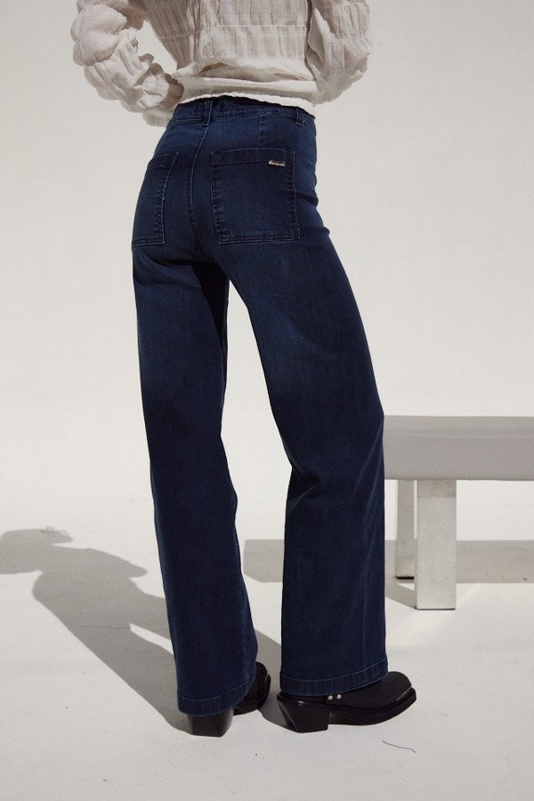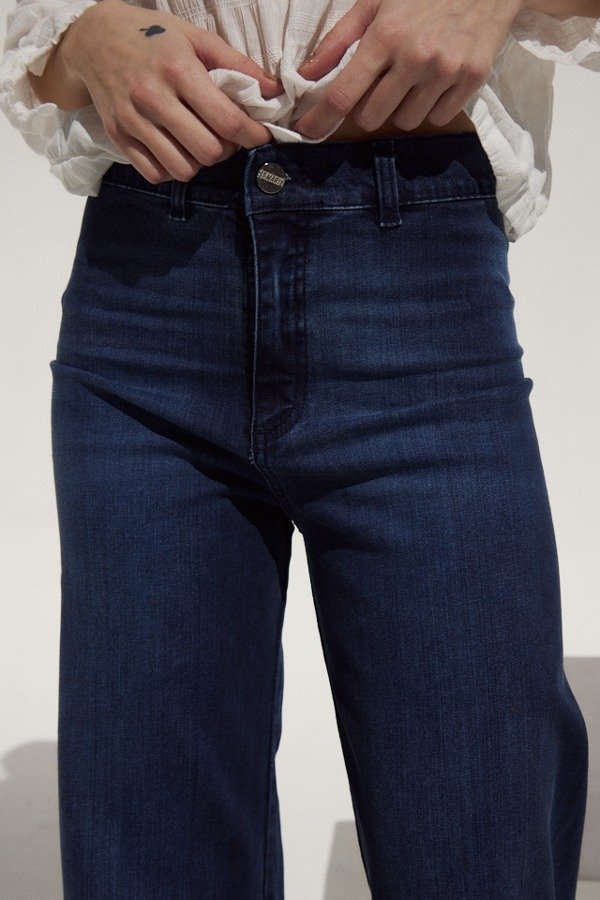 Pantalón calce straight tiro medio a los tobillos. Dos bolsillos.