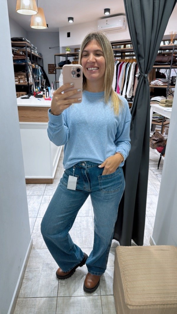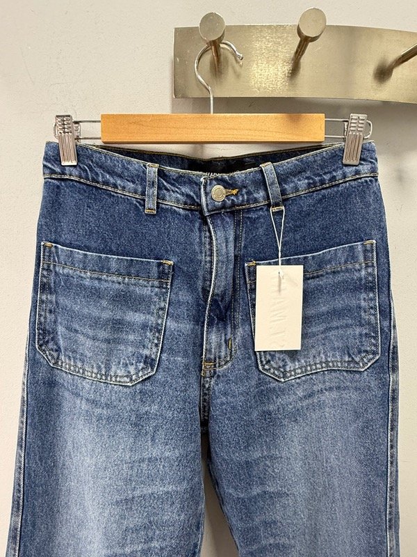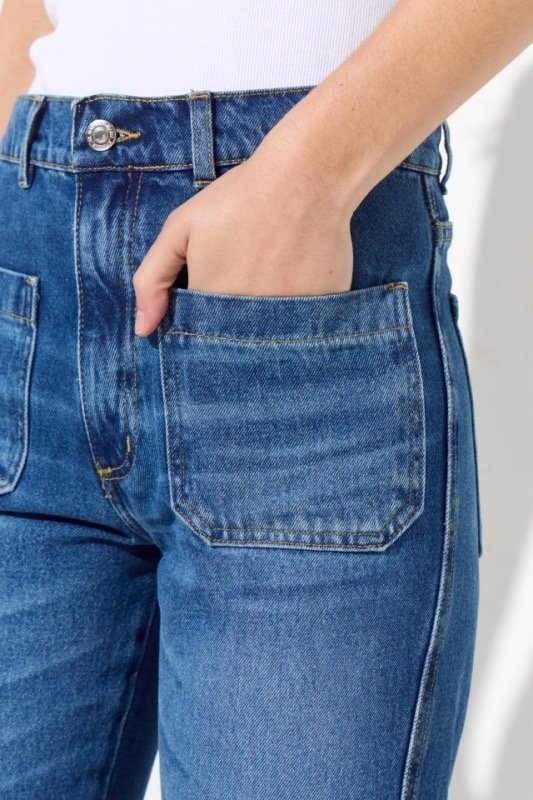 Jean de calce recto tiro alto dos bolsillos plaque en delantero es rígido