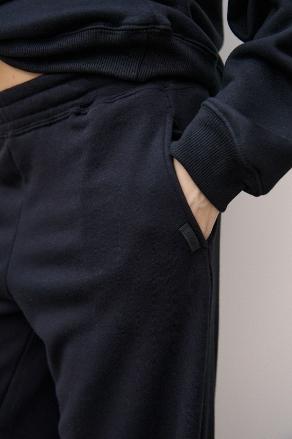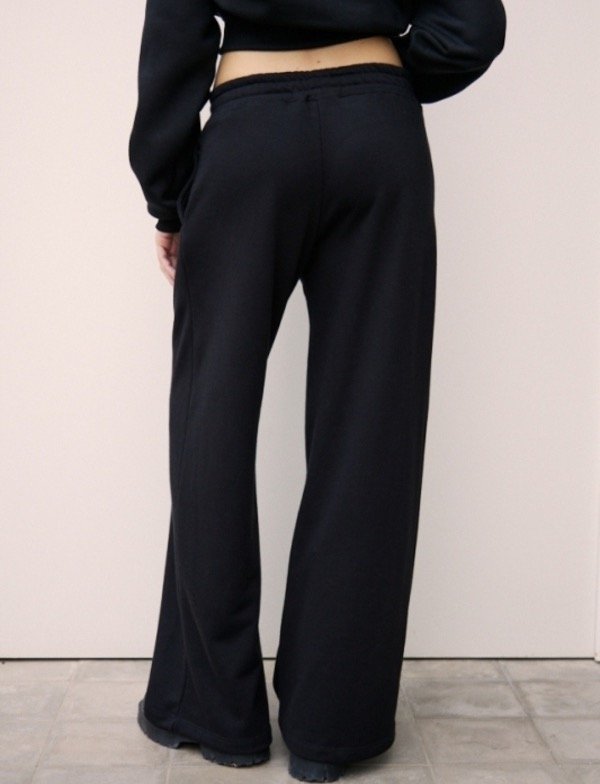 Pantalón calce wide leg con elástico en cintura y detalle de etiqueta de ecocuero en delantero.
