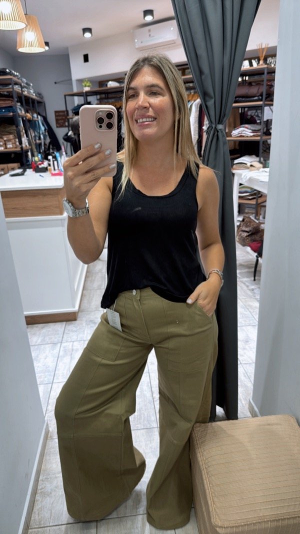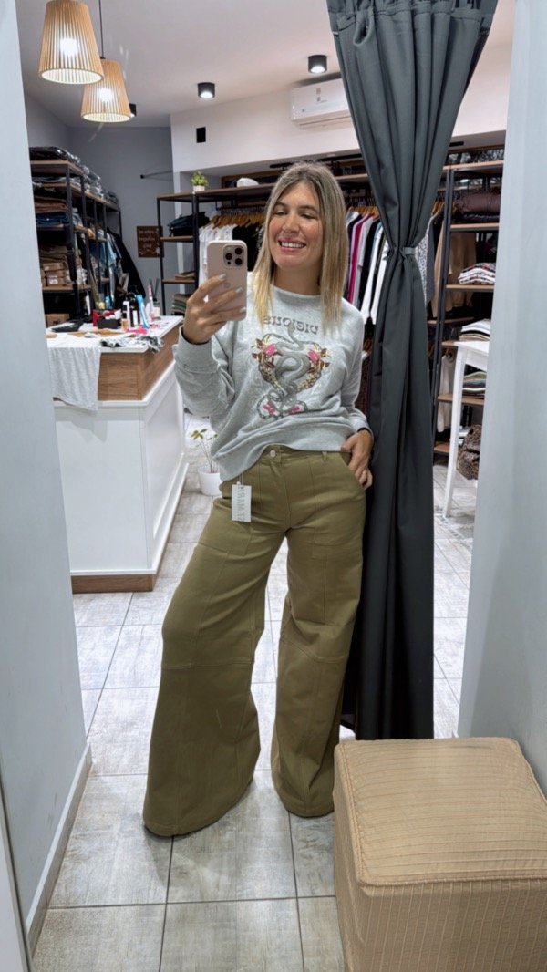 Pantalon pata ancha con recortes en delantero y bolsillos plaque