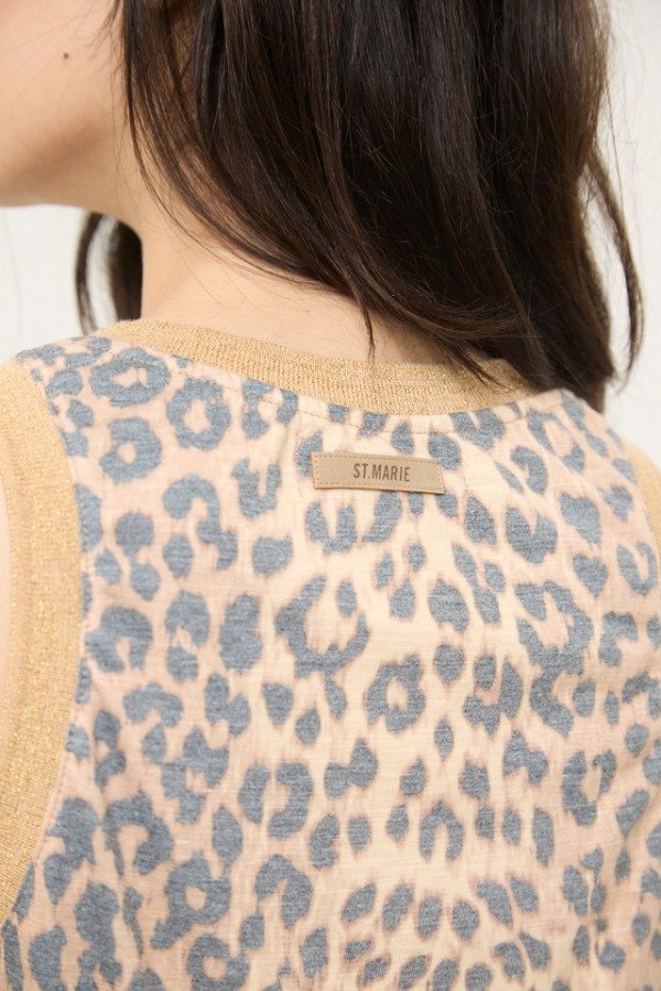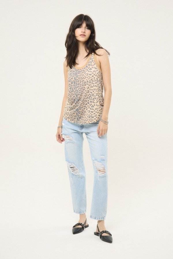 Musculosa viscosa flame estampado con tira de lurex en escote.
