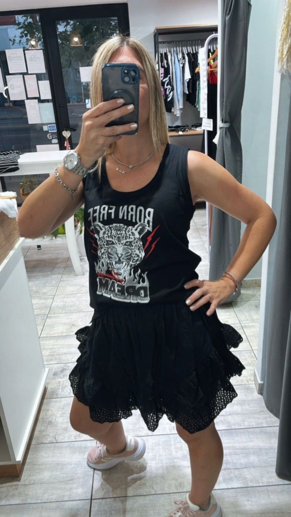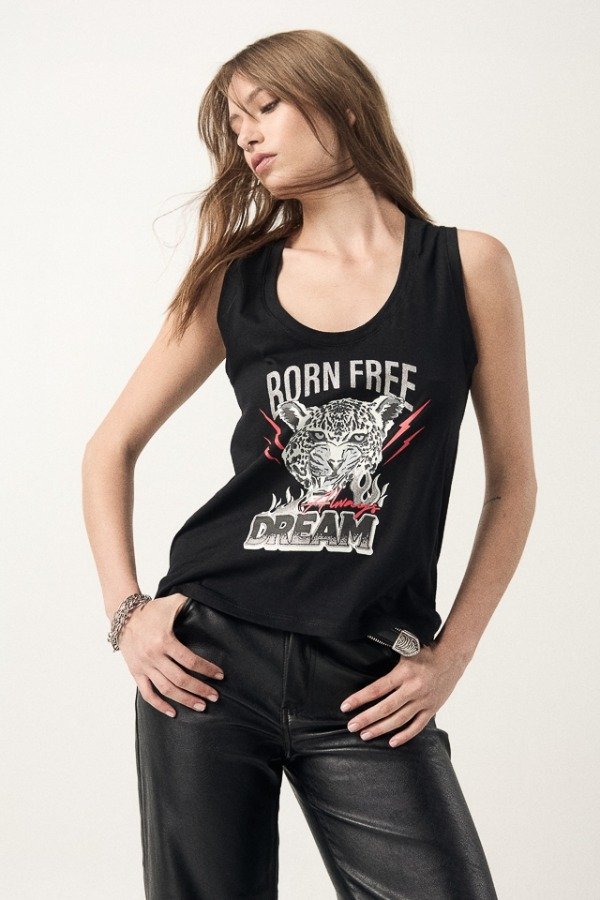 Musculosa con escote en U y estampa en delantero. Composición 100% algodón.