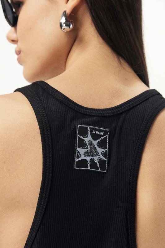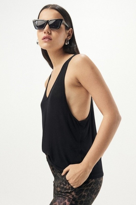 Musculosa de morley calce amplio con escote V y detalle de etiqueta personalizada