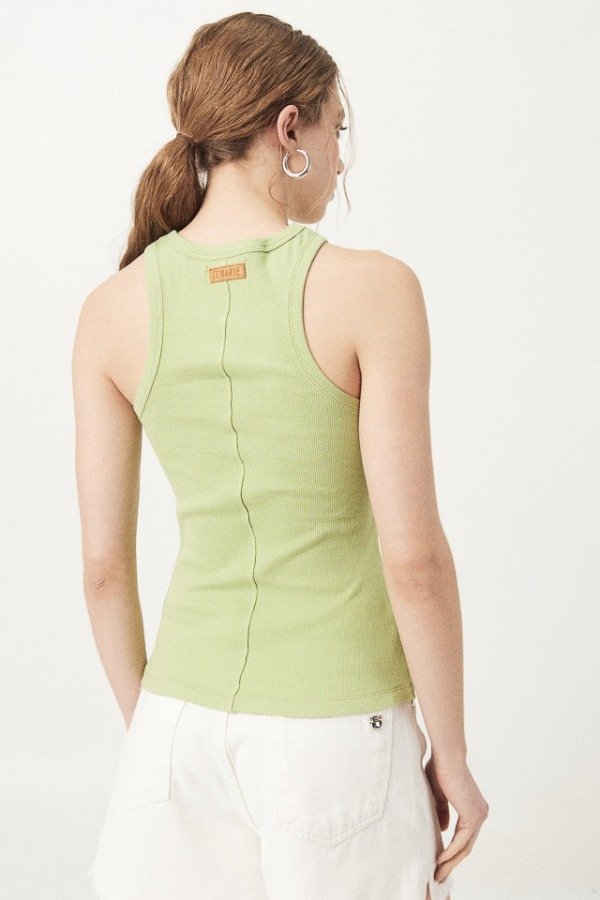 Musculosa de morley escote Halter. Etiqueta tejida en espalda.