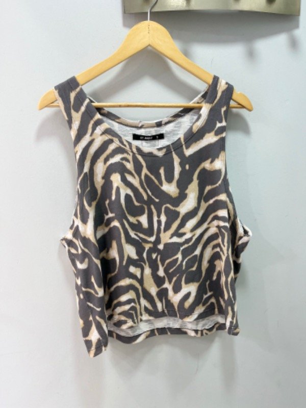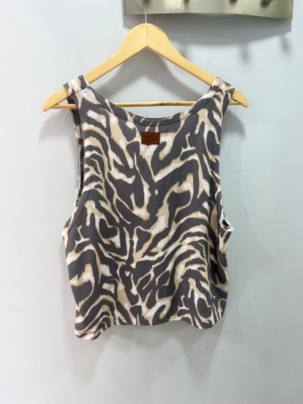 Musculosa Print cerrada con detalle de etiqueta de ecocuero en espalda