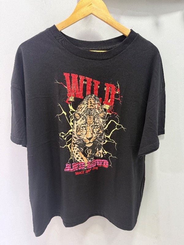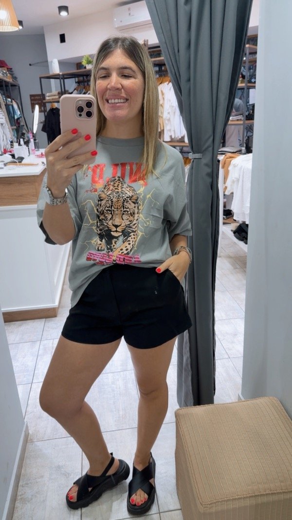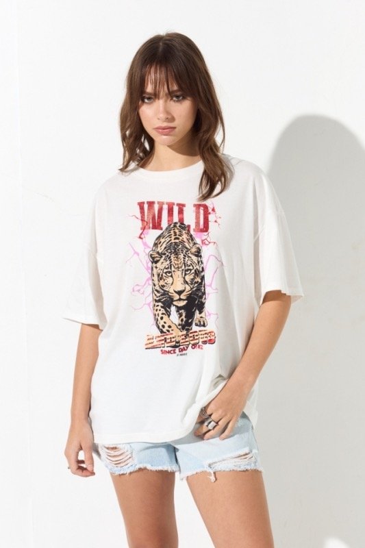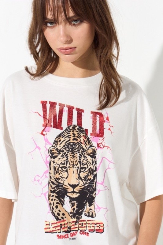 Remera estampada corte clásico escote redondo y zócalo en mangas