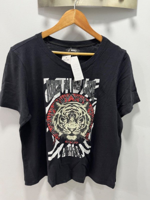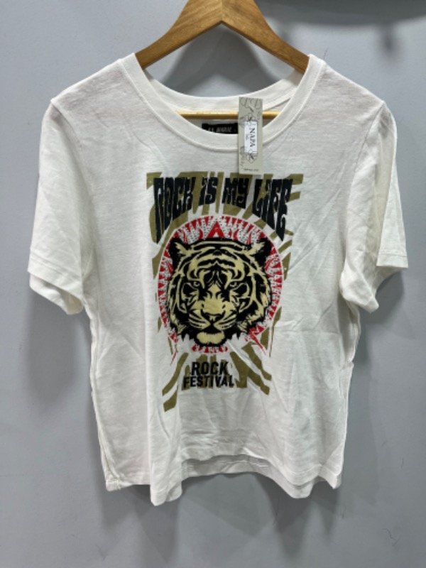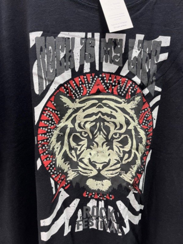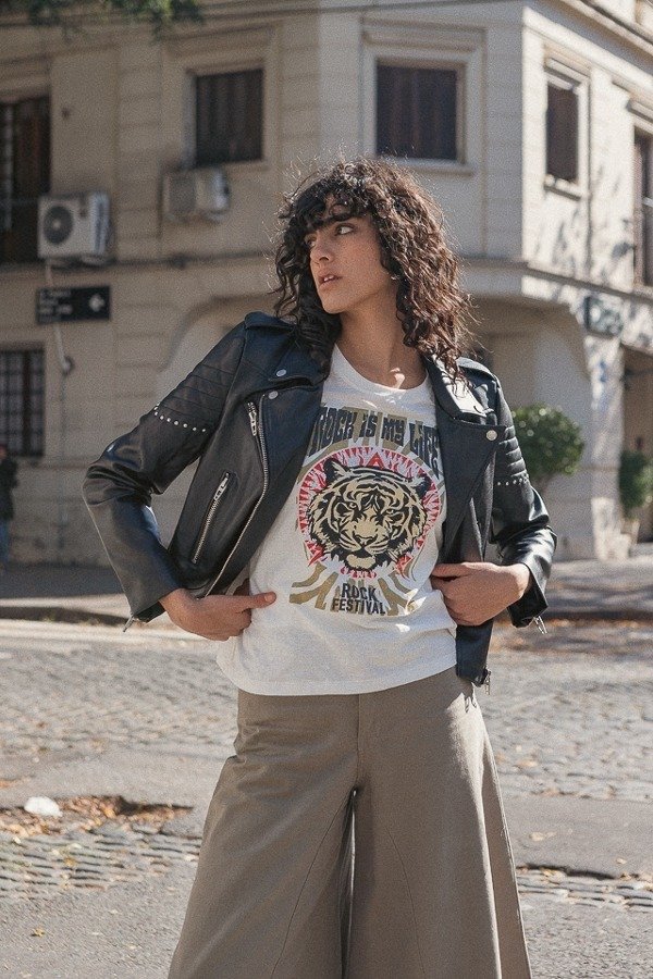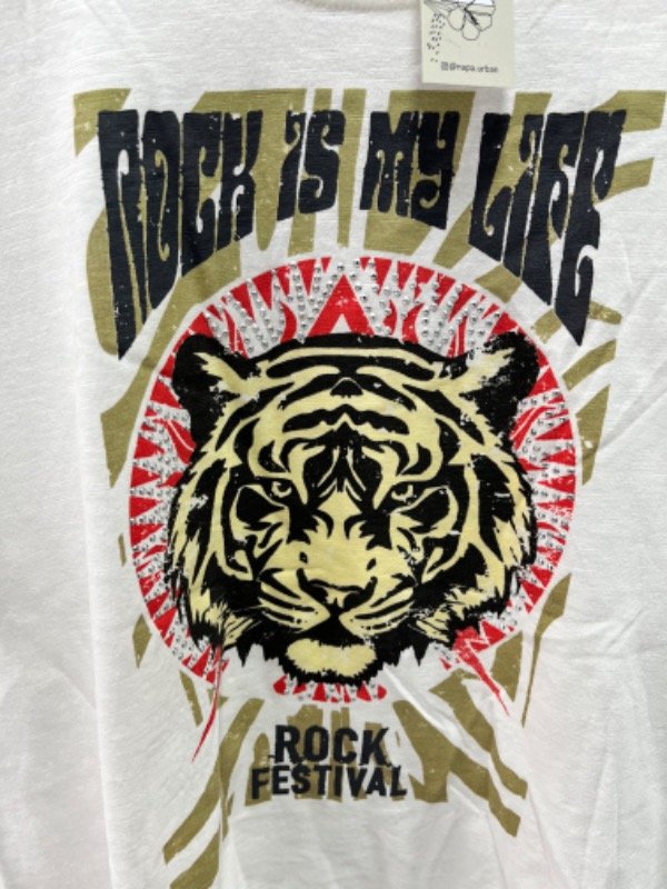 Remera de algodón flame manga corta con estampa con glitter en delantero, cuello redondo más amplio.