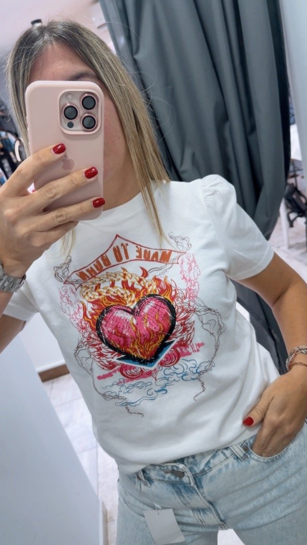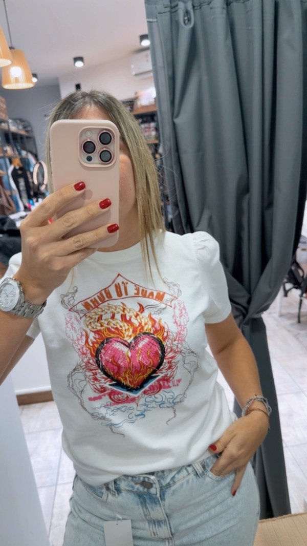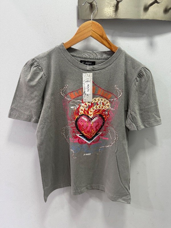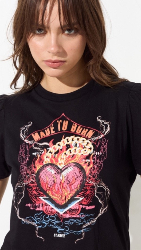 Remera manga corta estampada si escote es redondo manga princesa