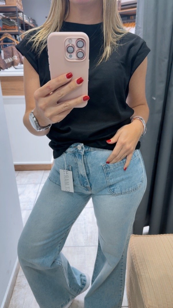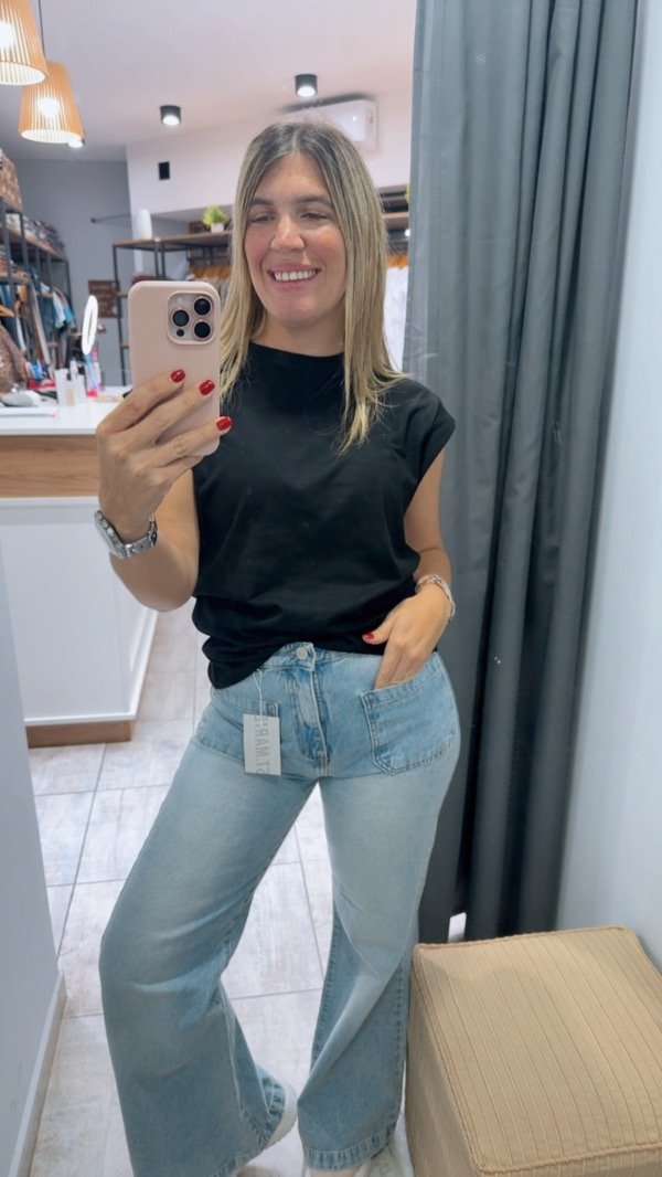 Remera de jersey con zócalo en las mangas corte amplio escote redondo y terminaciones en manga de Morley