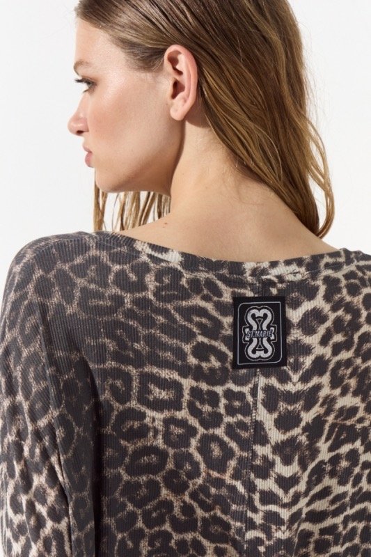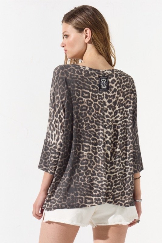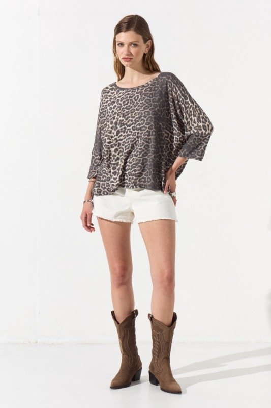 Remeron de Morley con escote redondo amplio y mangas 3/4 es talle único y estampa exclusiva