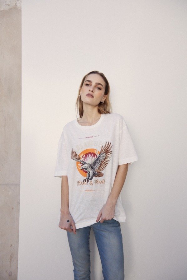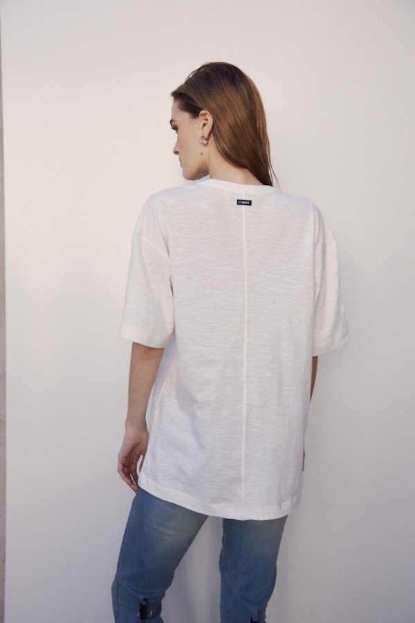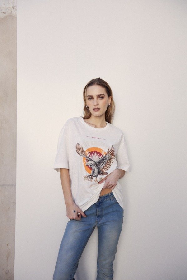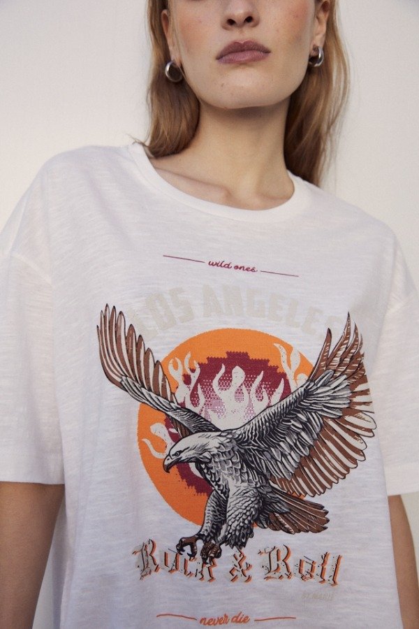 Remera oversize de cuello redondo manga corta con estampa en delantero.