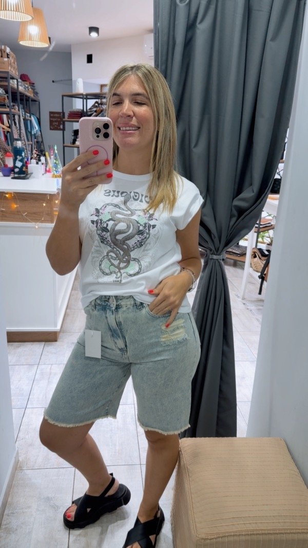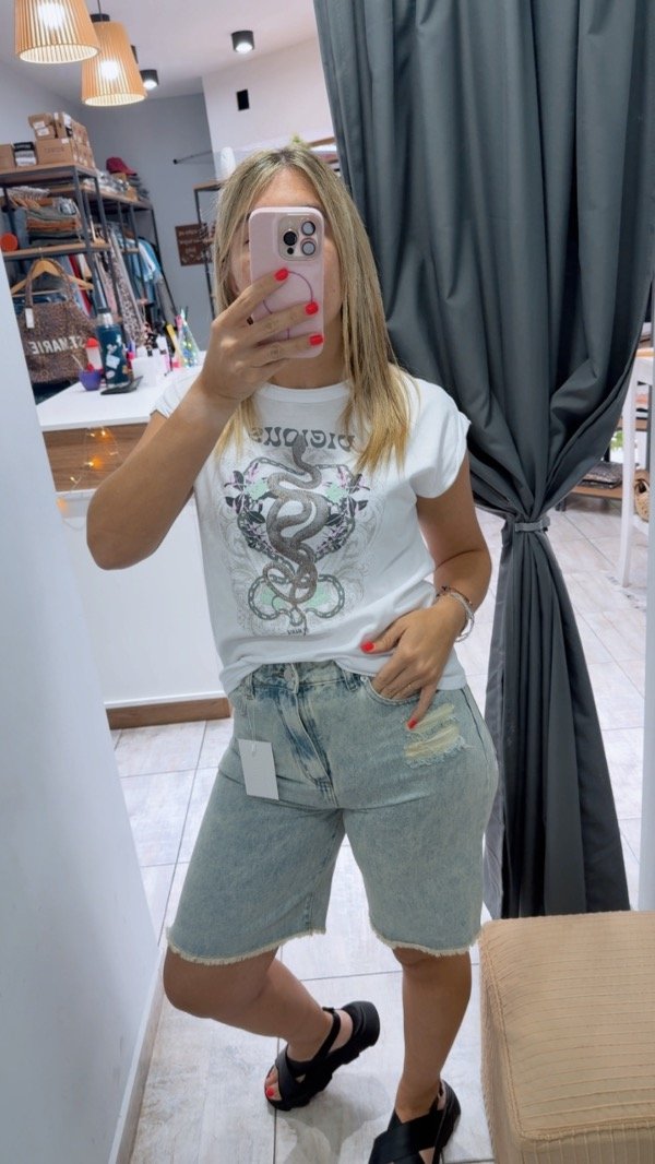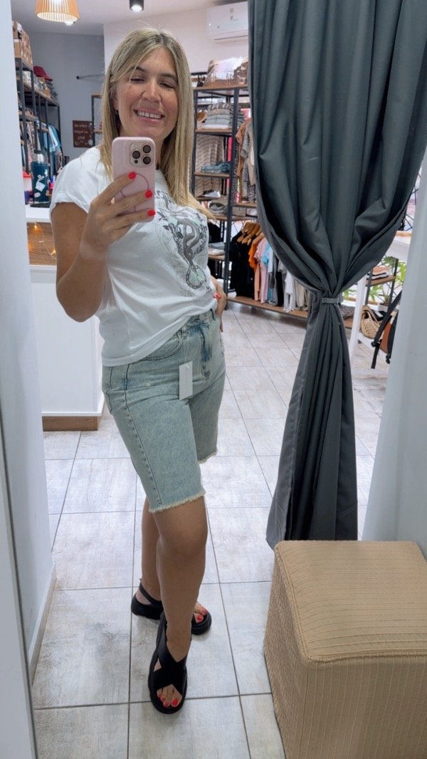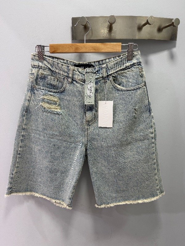 Bermuda de Jean con roturas en delantero y largo desflecado