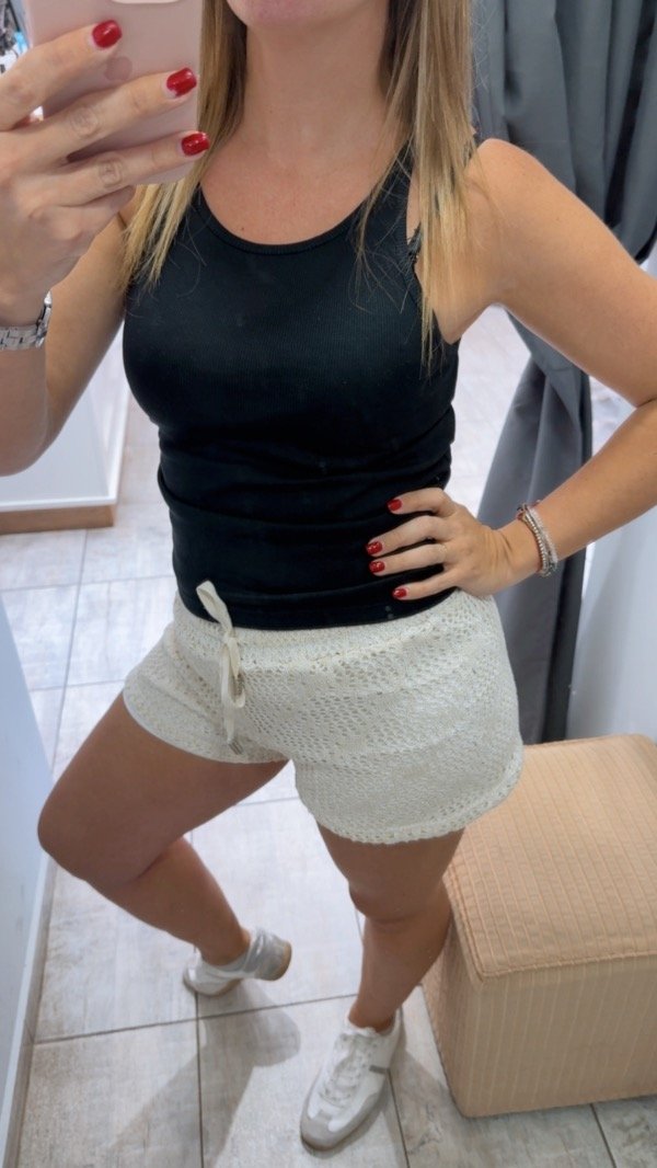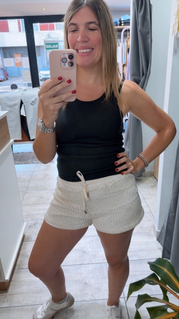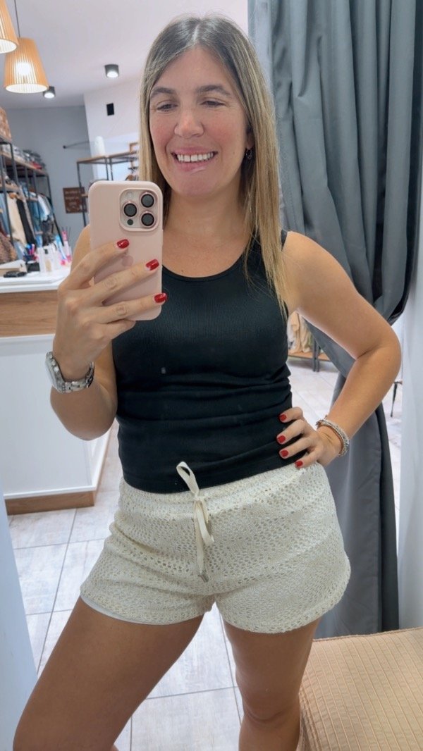 Short playero de crochet con forreria interna lleva cordón plano en cintura con terminales de zamak grabadas