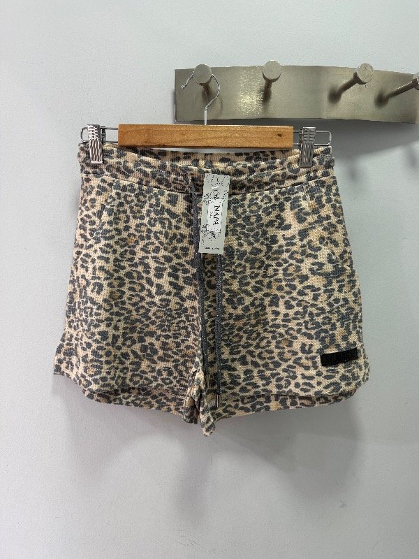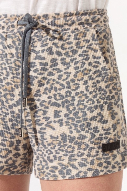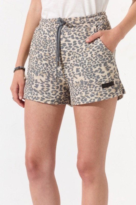 Short de Wafle print con lazo ajustable en cintura y detalle de badana de cuero en delantero