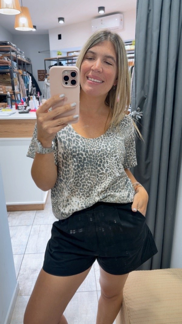 Short de bengalina con pinzas en delantero y elástico en cintura