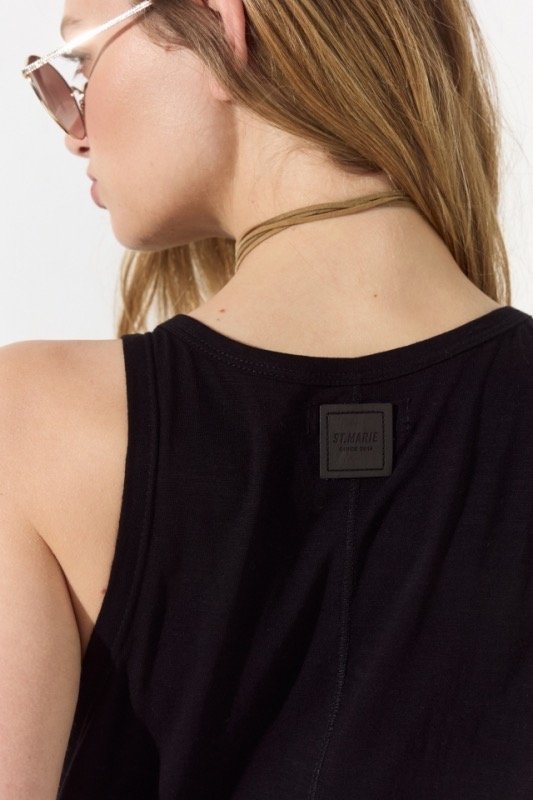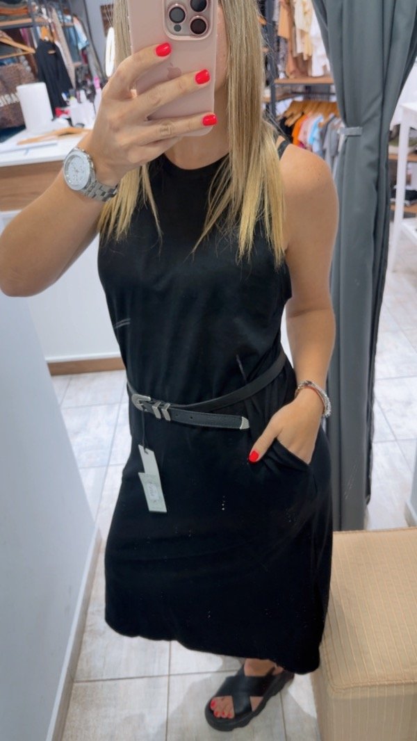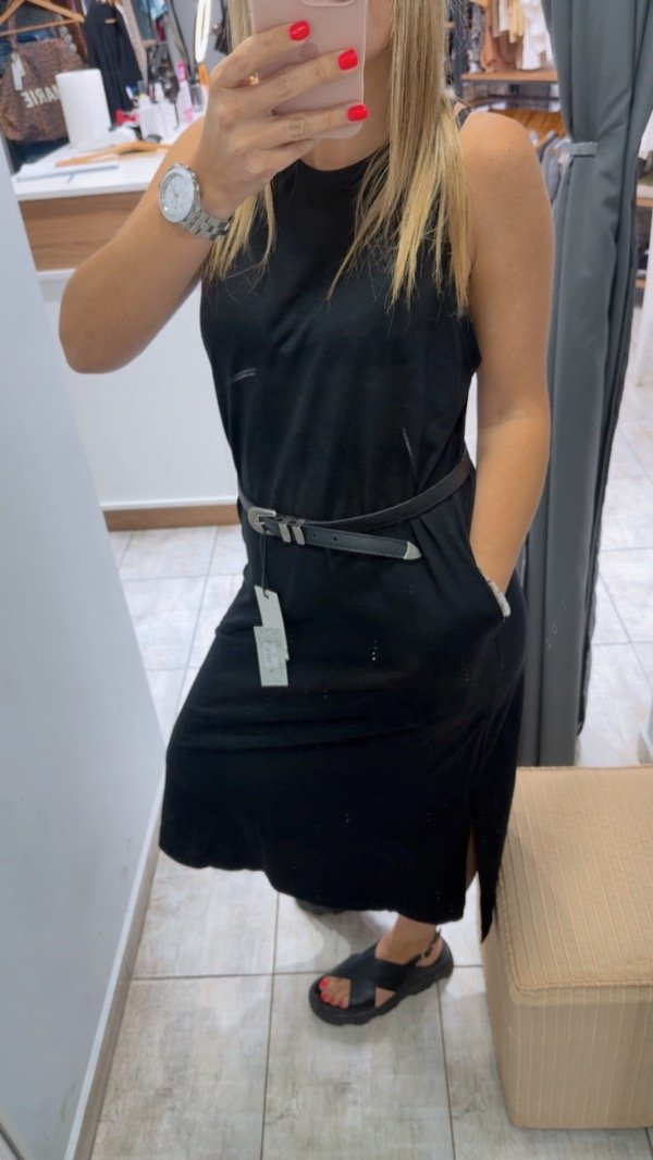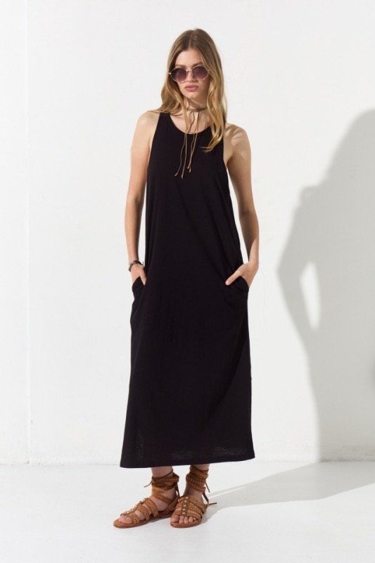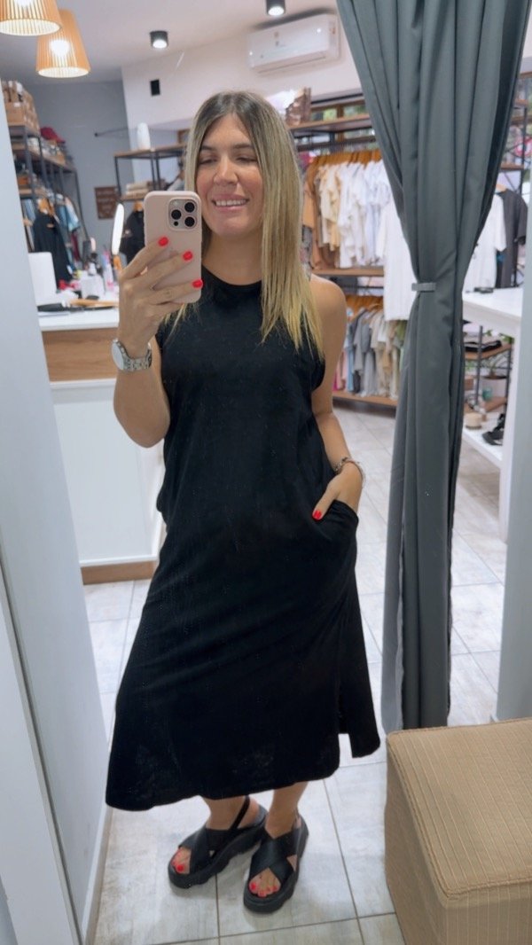 Vestido largo de algodón con tajos laterales y badana de cuero en espalda